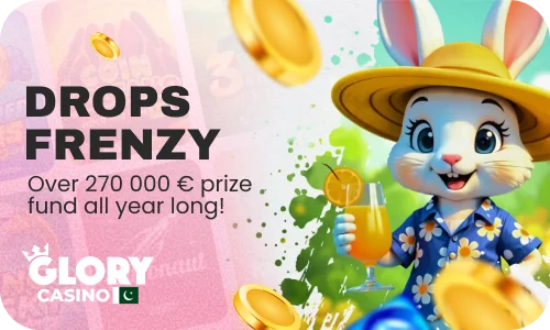 • Free Spins. Deposit 3,000 PKR or more to receive 250 Free Spins from Glory Casino.